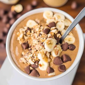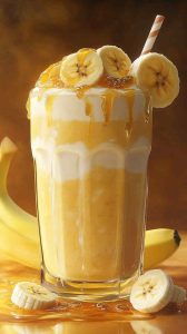 Blend pisang beku, yogurt, dan madu, lalu beri topping granola atau buah segar.