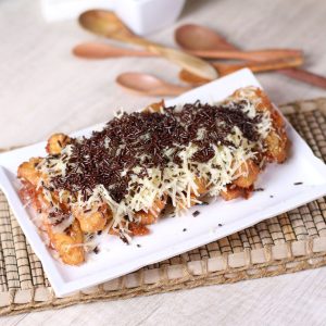 Renyah di luar, lembut di dalam. Bisa di beri topping cokelat, matcha, tiramisu,keju leleh.