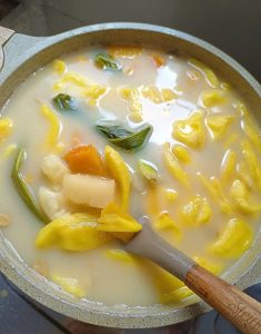 Labu kuning memberikan rasa manis alami dan tekstur lembut yang mudah menyatu dengan kuah santan.