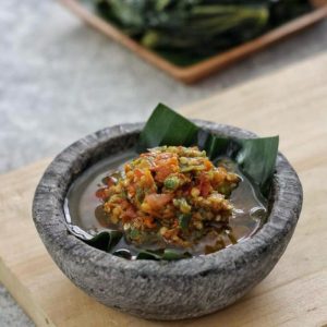 Sambel terasi Surabaya terkenal karena rasa terasinya yang kuat dan gurih.